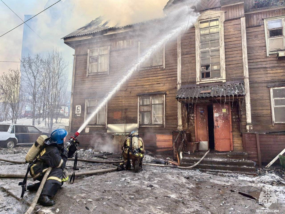 Пятерых погорельцев спасли из деревянного дома с 90-летней историей в Мурманске