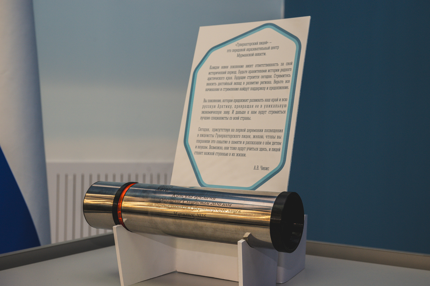 Как пишет пресс-служба правительства Мурманской области, Андрей Чибис призвал ребят активно учиться и впитывать знания, ведь от них зависит будущее Арктической зоны. В рамках мероприятия была заложена капсула с посланием к потомкам на 2050 год.