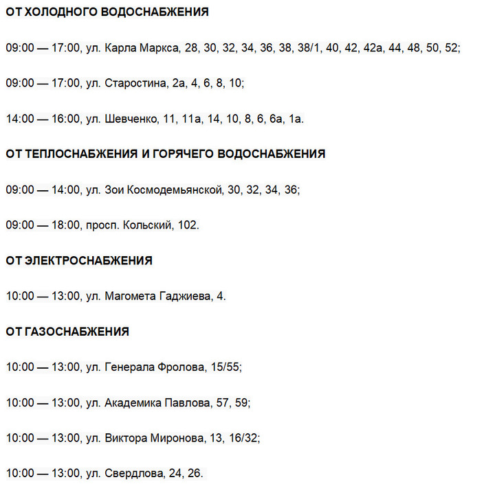 Как сообщает администрация Мурманска, эти отключения проводятся для надежной и качественной работы систем водного, газового, теплового и электрического снабжения.